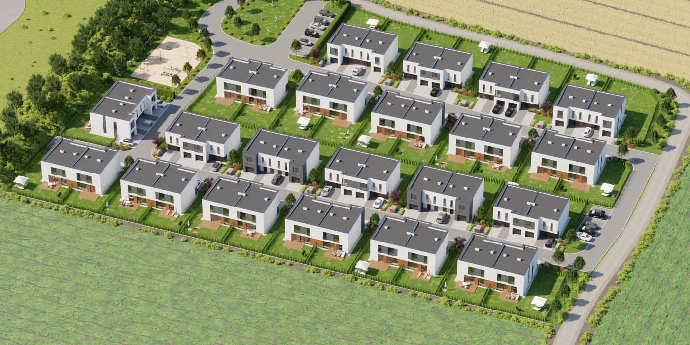 Każdy dom ma 140 m² powierzchni użytkowej z garażem. Wnętrza są bardzo przestronne oraz maksymalnie funkcjonalnie – oprócz 4 pokoi znajduje się w nich miejsce na pralnię i dwie garderoby.