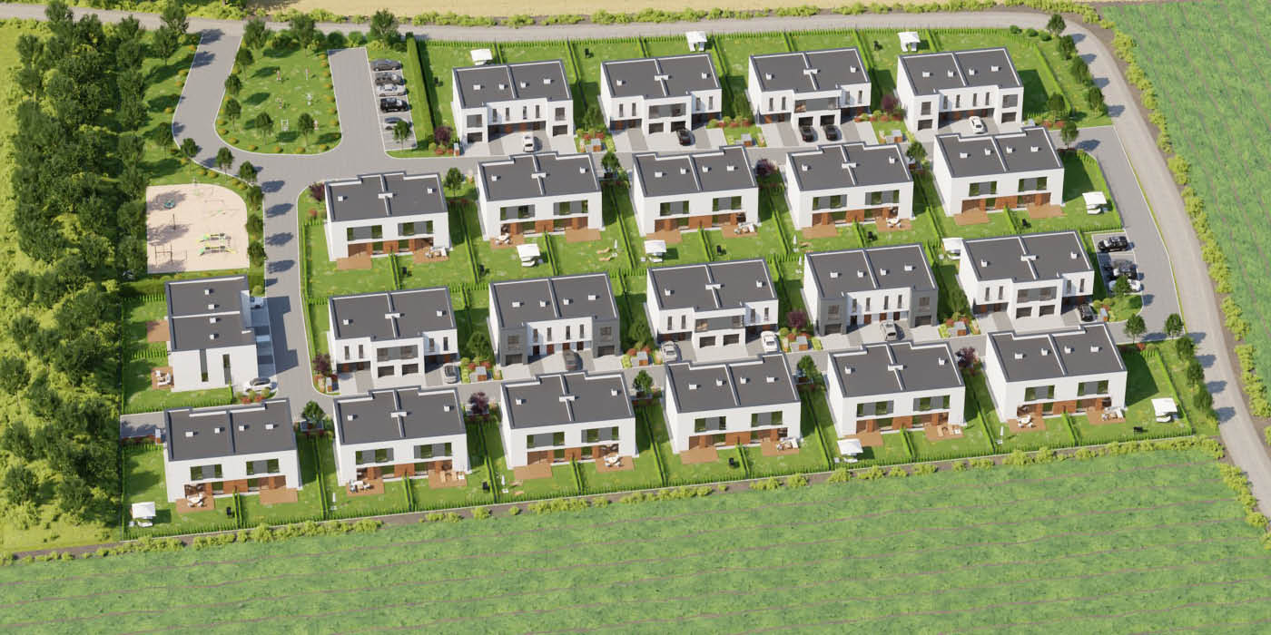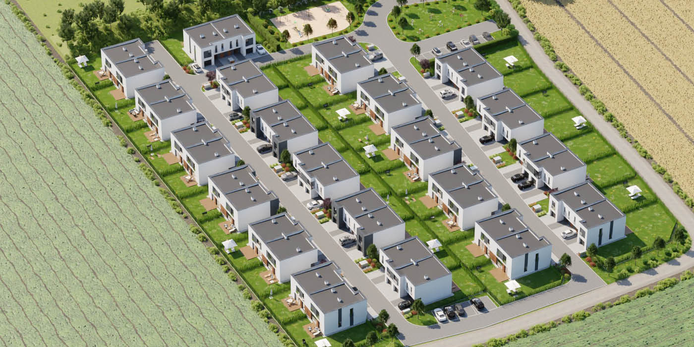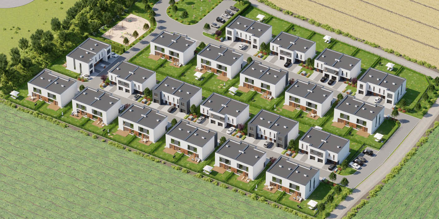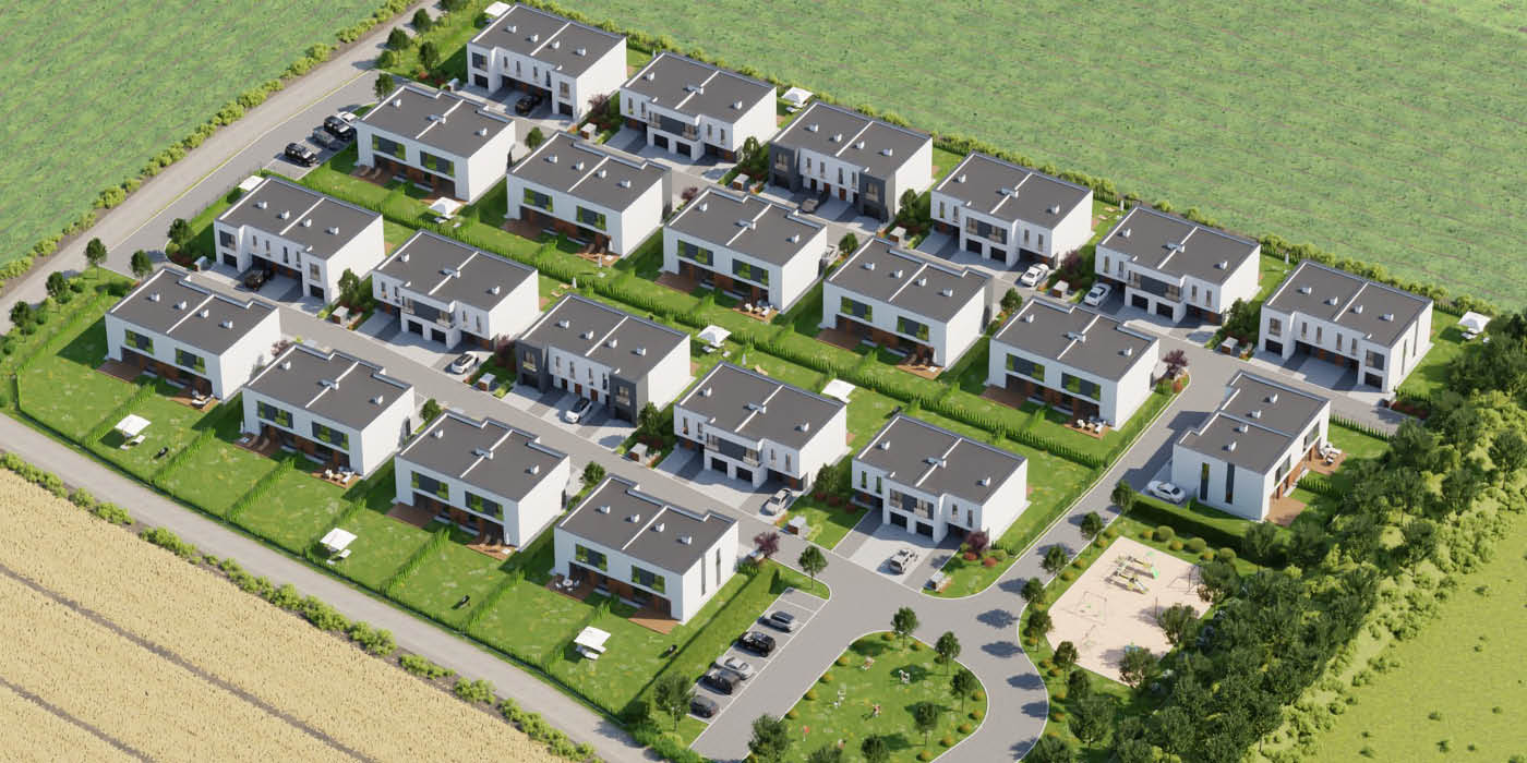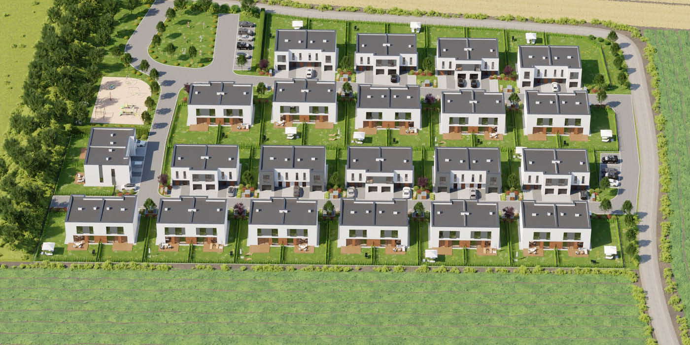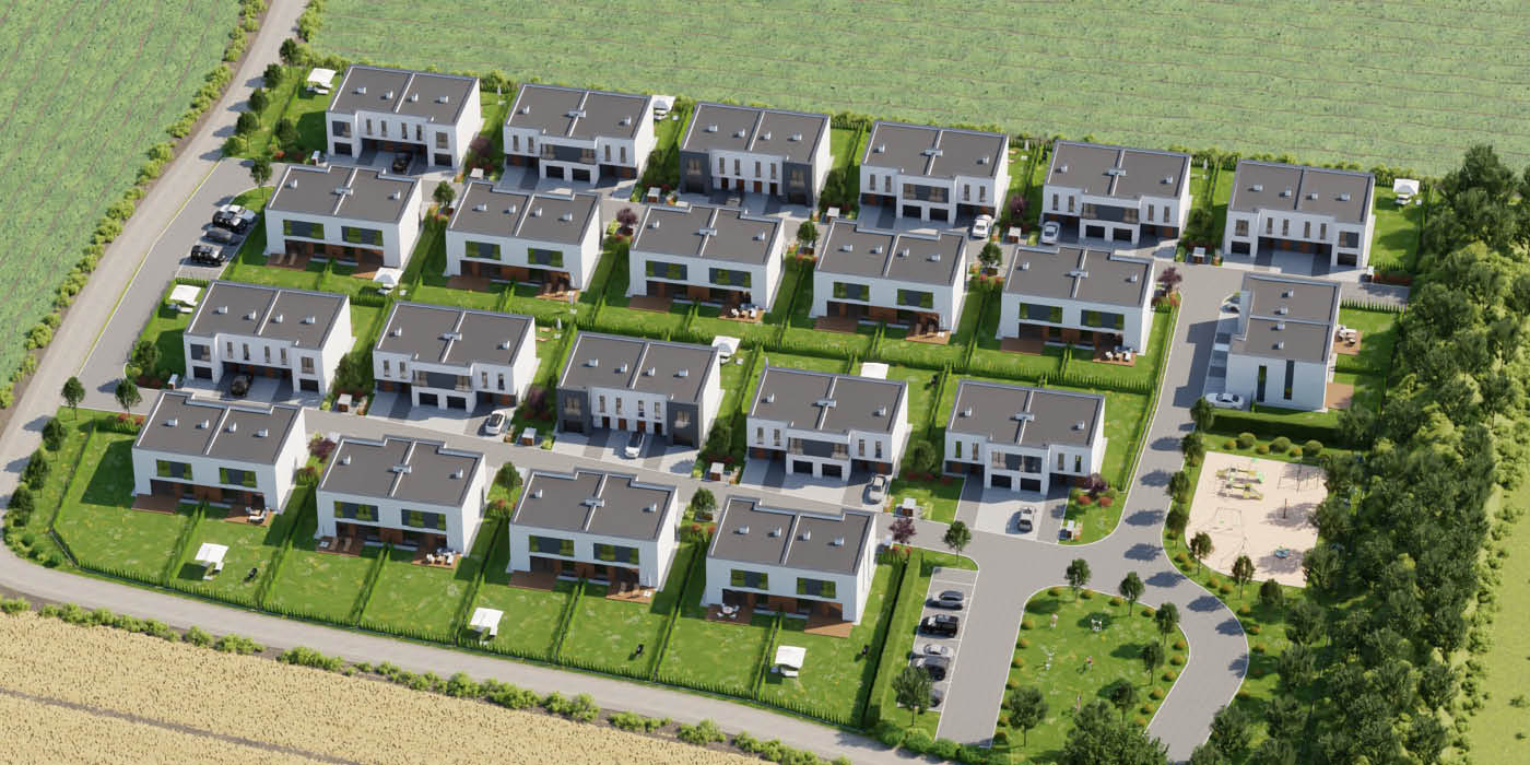 Każdy dom ma 140 m² powierzchni użytkowej z garażem. Wnętrza są bardzo przestronne oraz maksymalnie funkcjonalnie – oprócz 4 pokoi znajduje się w nich miejsce na pralnię i dwie garderoby.