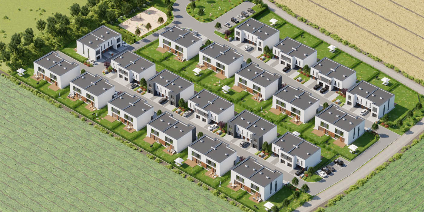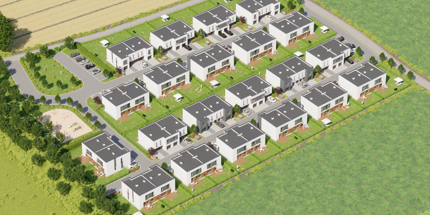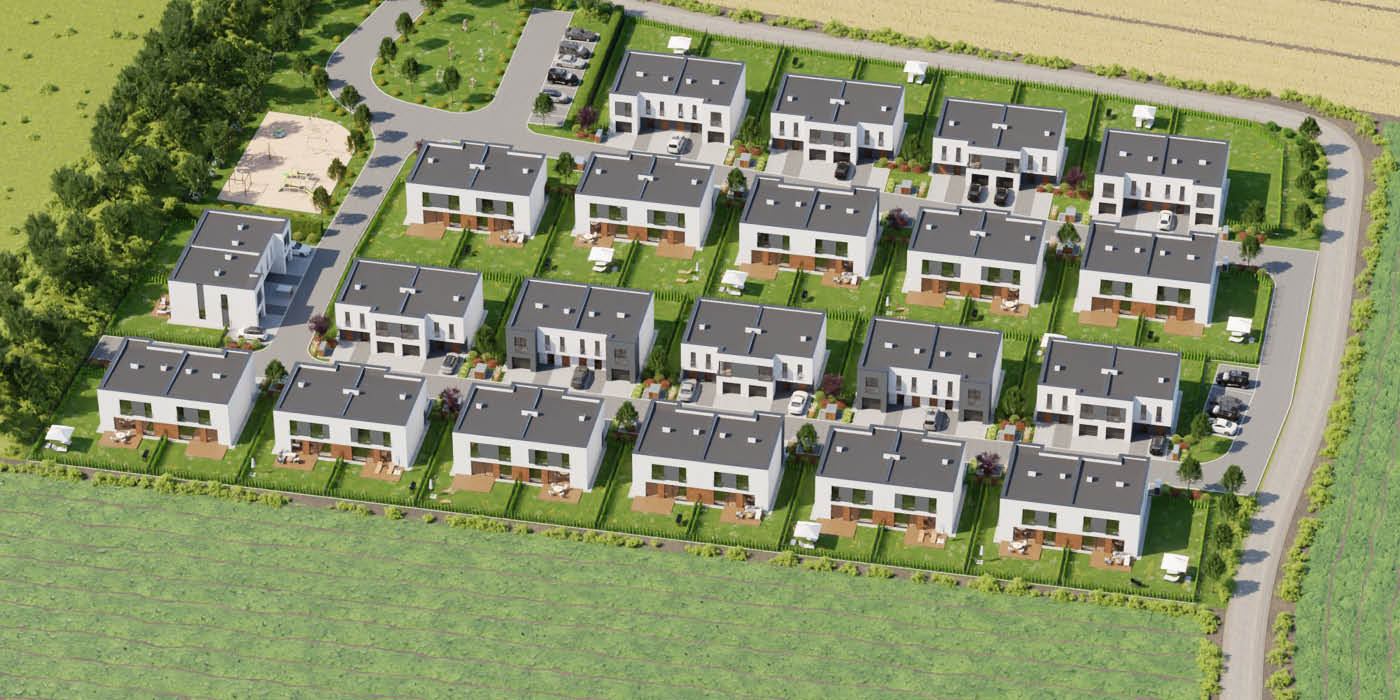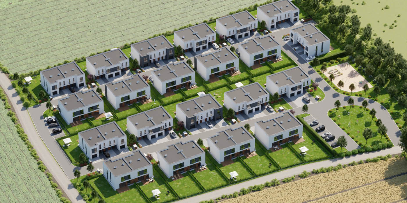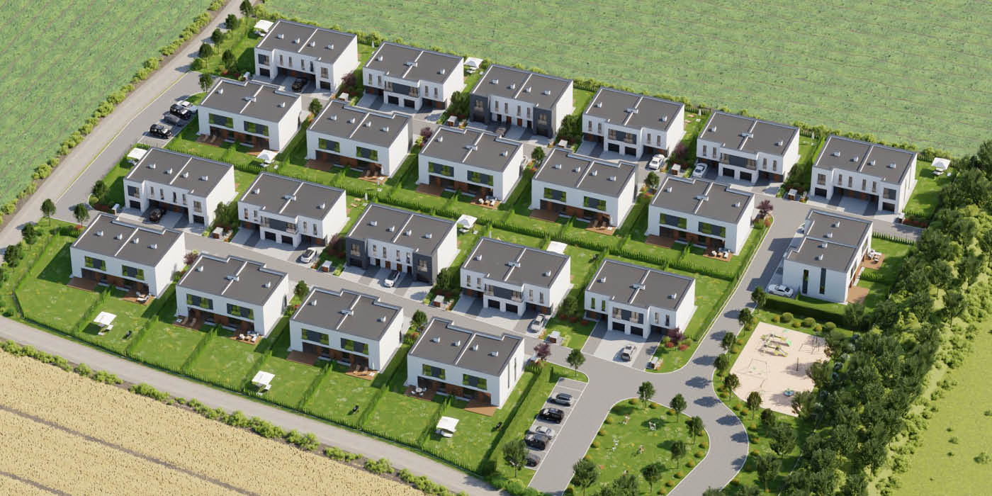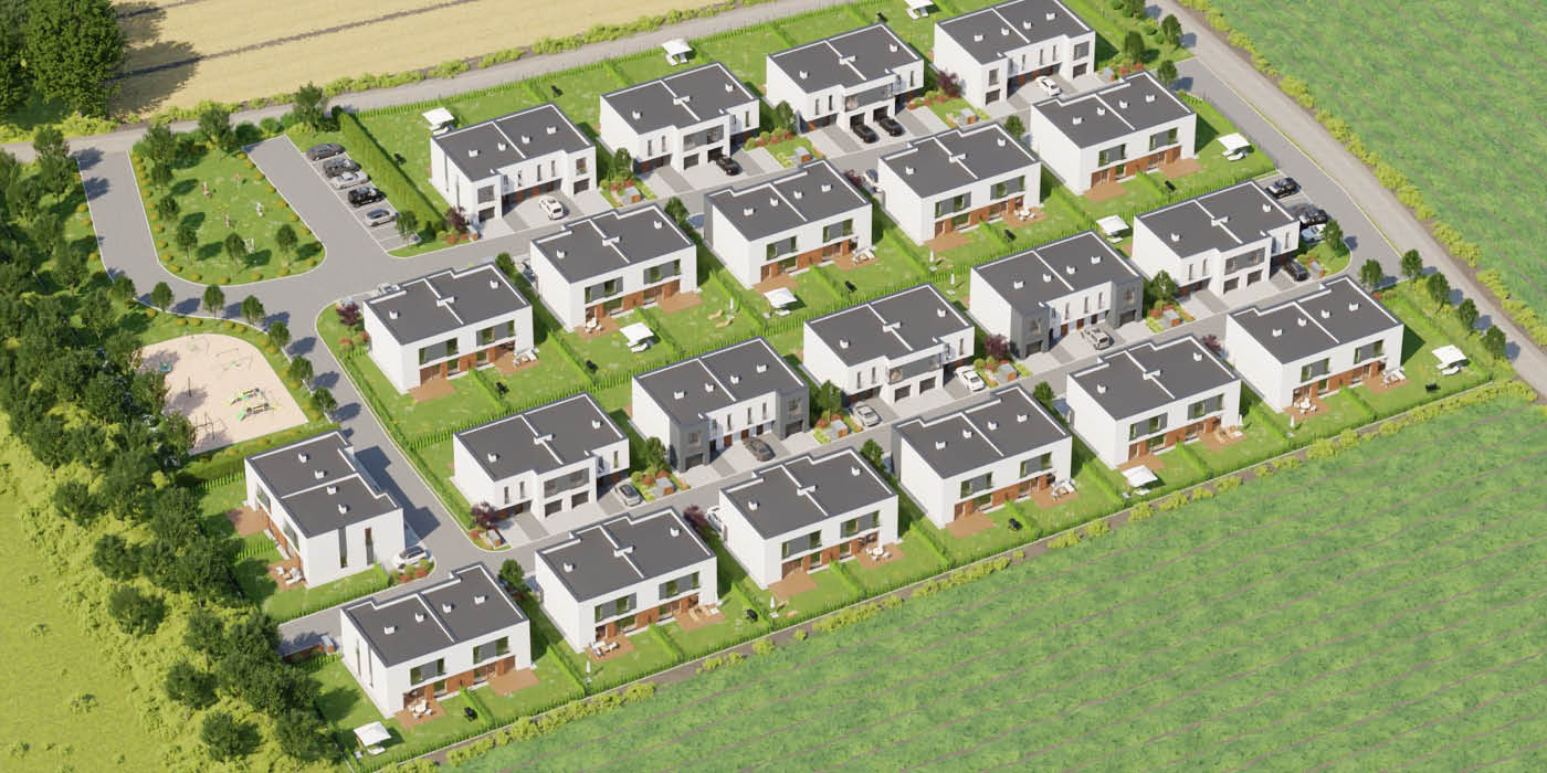 Każdy dom ma 140 m² powierzchni użytkowej z garażem. Wnętrza są bardzo przestronne oraz maksymalnie funkcjonalnie – oprócz 4 pokoi znajduje się w nich miejsce na pralnię i dwie garderoby.