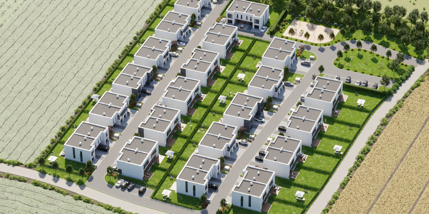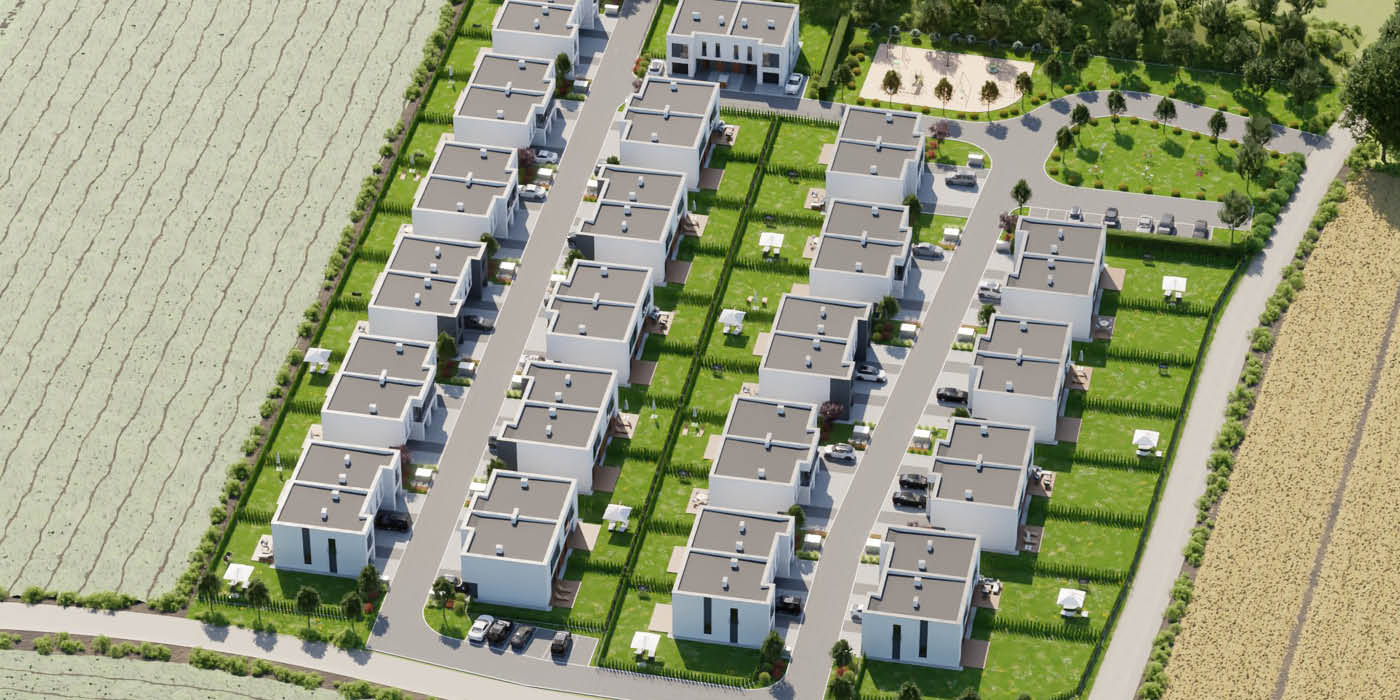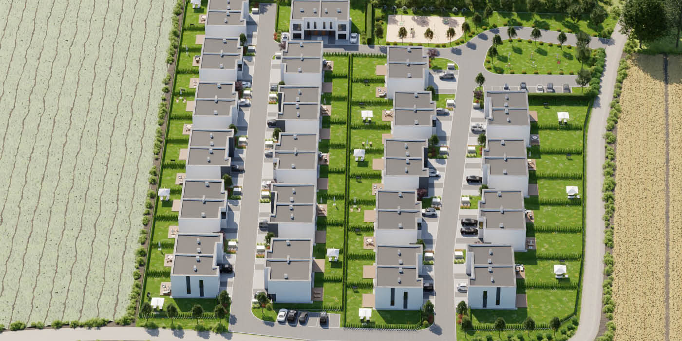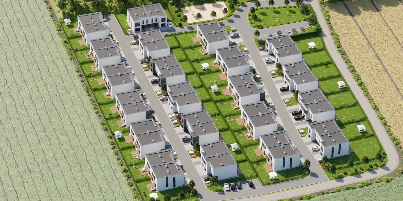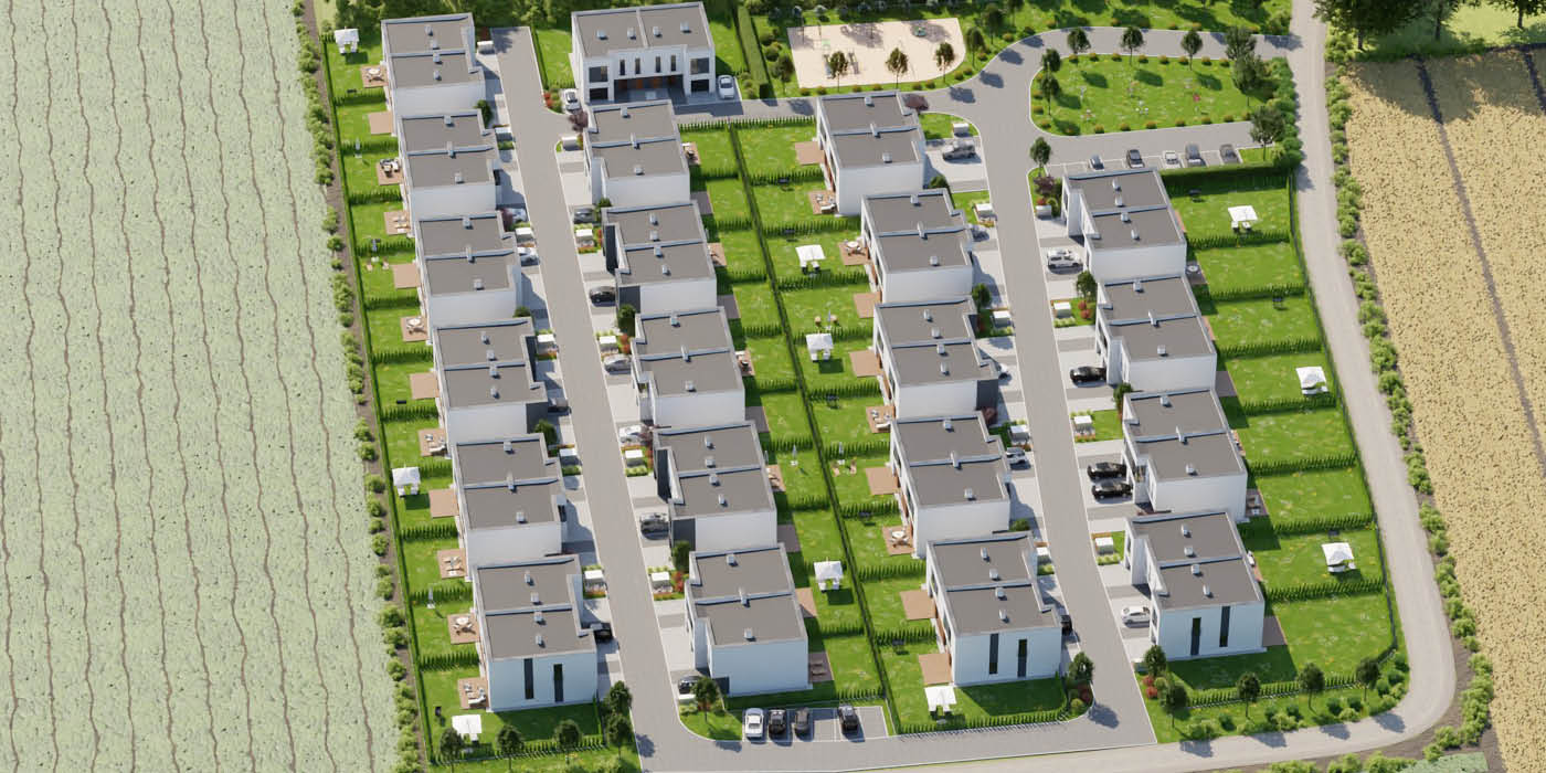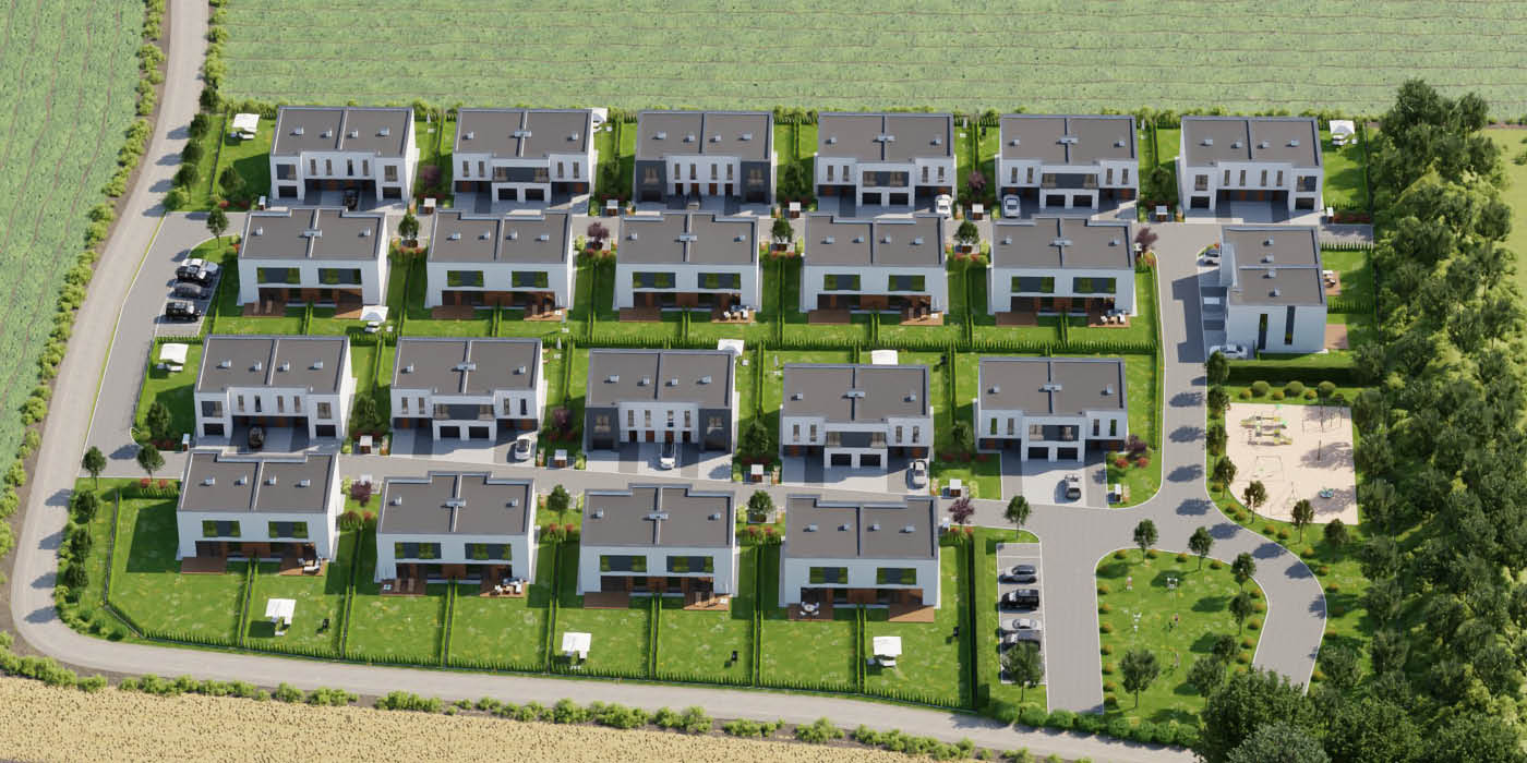 Każdy dom ma 140 m² powierzchni użytkowej z garażem. Wnętrza są bardzo przestronne oraz maksymalnie funkcjonalnie – oprócz 4 pokoi znajduje się w nich miejsce na pralnię i dwie garderoby.